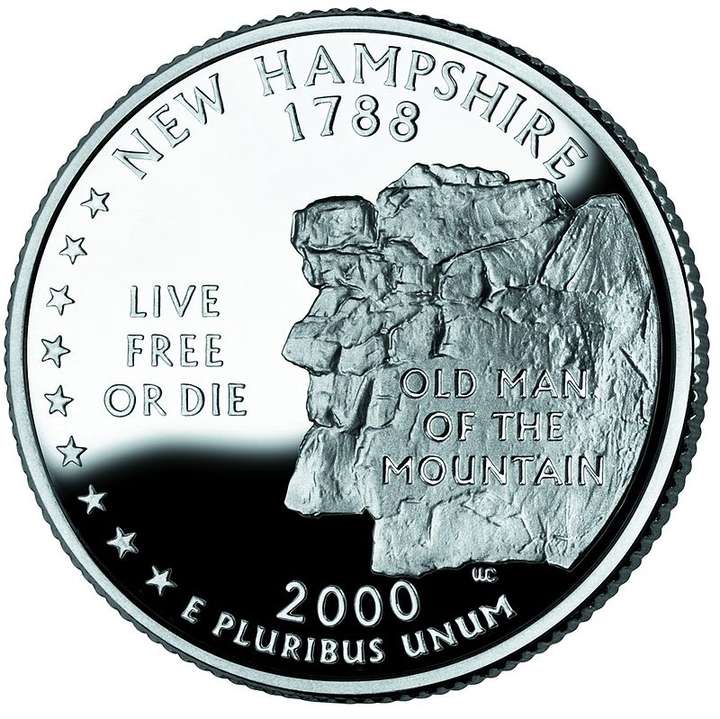 补充一些高清图片。这是新罕布什尔州的老人岩,文字是LIVE FREE OR DIE(要么自由地活,要么死)。是不是搜集美分这么无聊的事,你也有冲动了?