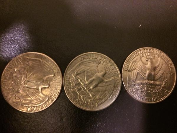 5 把老鹰图案的25美分剔除掉。这是普通的25美分