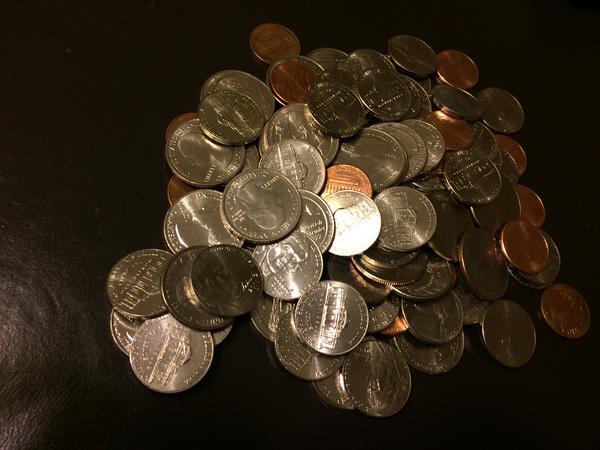 4 美分分类。1美分、5美分的垃圾先靠边站。右上角铜色的是1美分,左上角是5美分。
