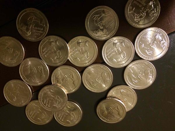 6 把2015年英国投降(1777年)的25美分纪念币剔除掉。这25美分讲述的故事是萨拉托加大捷,美国13个州对阵英军逆转局面的一次战役。这硬币目前发行量特别大,收集这个意义不大。