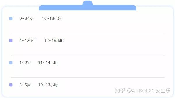 美国儿科学会和美国睡眠学会针对不同年龄段儿童推荐的每天睡眠时长如下: