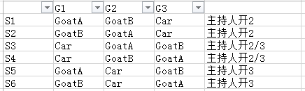 好吧,你既然展开了门和羊车的排列,那理所当然也一定能想到有这样6种情况