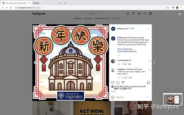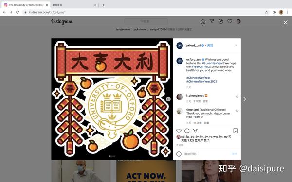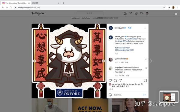 然后大年初一我刷ins的时候看到我心心念念的理想大学牛津官方发了含有中国字的图,我震惊!
